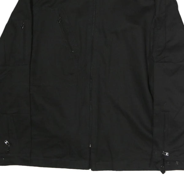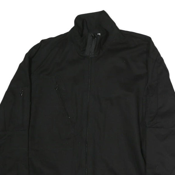 Mens Black Cotton Zip Jacket XL Plain Tactical Workwear Utility Pocket
