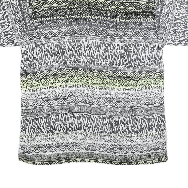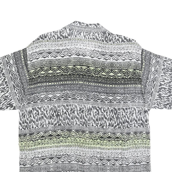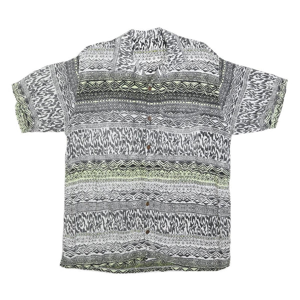 Mens Black & Cream Patterned Viscose Shirt L Short Sleeve Casual Button Up