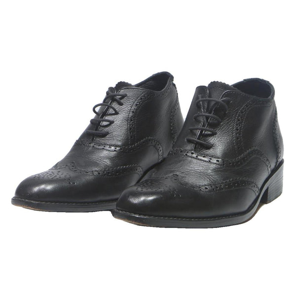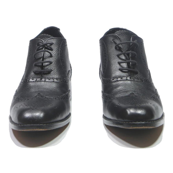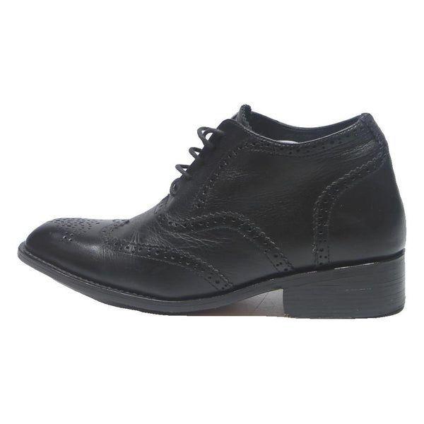Mens Black Leather Brogue Ankle Boots UK 7.5 Classic Wingtip Design Lace-Up