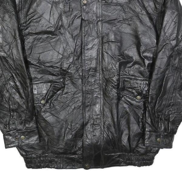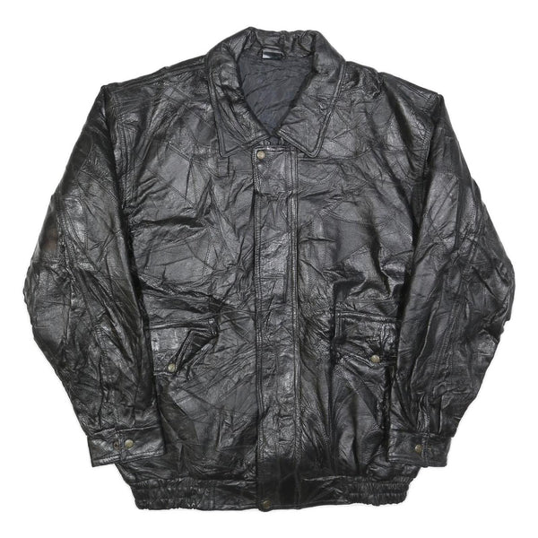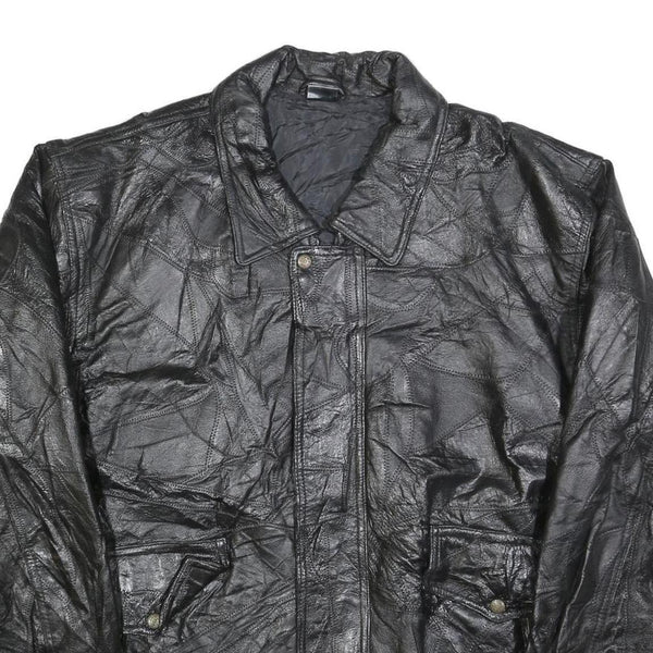 Mens black leather jacket 2xl zip closure classic fit plain stylish outerwear