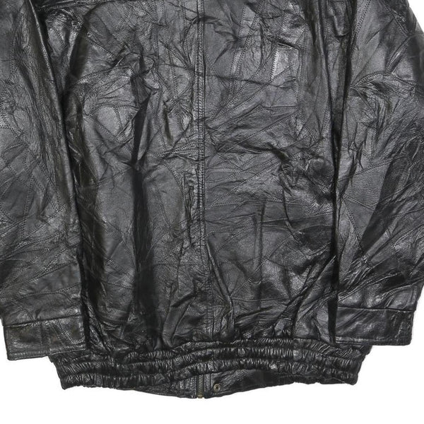 Home Mens Black Leather Jacket 2XL Zip Closure Classic Fit Plain Stylish Outerwear