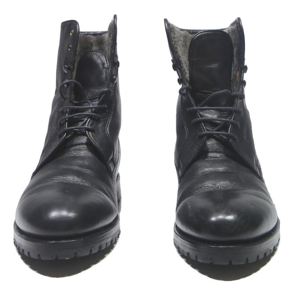 Mens Black Leather Lace-Up Combat Boots UK 6.5 Classic Durable Stylish Footwear