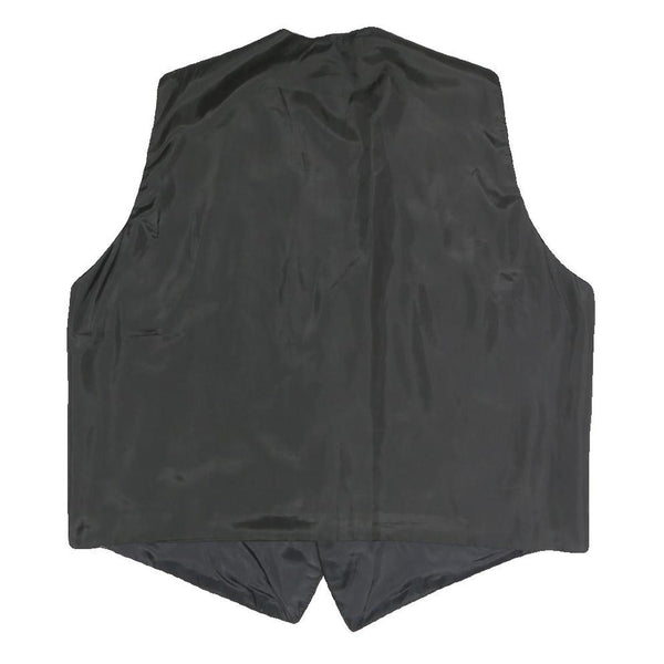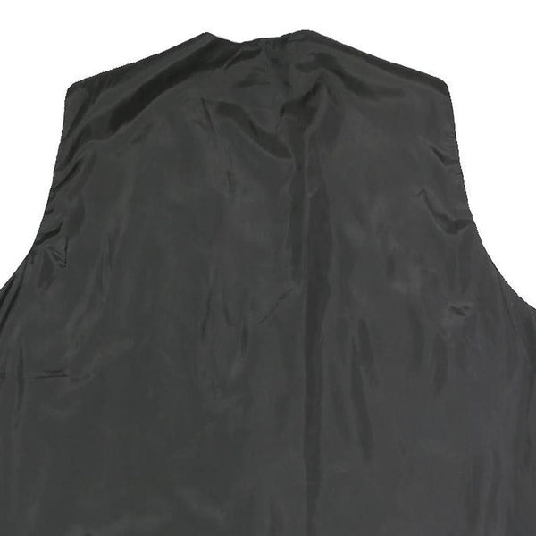 The jacket has a tailored fit with a shorter waist length and a plain pattern across the body and back. The back is made of a smooth, shiny material, enhancing comfort and adding a lightweight feel. The sleeveless design allows layering options with shirts or knits underneath.