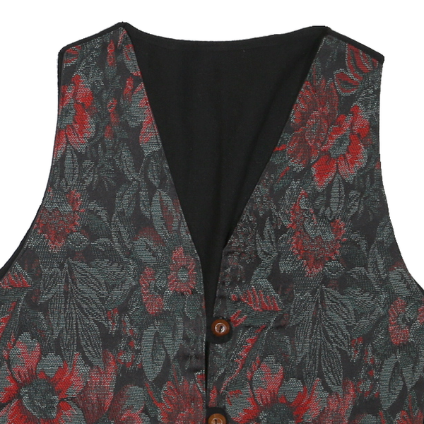 Mens Black & Red Floral Button Jacket M Polyester Blend Floral Pattern Waistcoat