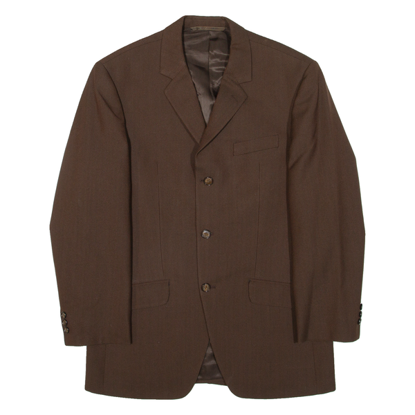 Mens Blazer Jacket Brown Knit Wool Herringbone S