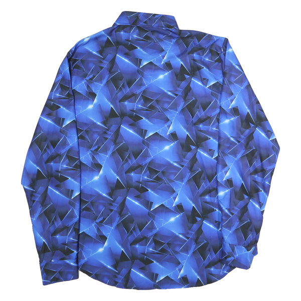 Home Mens Blue & Black Abstract Pattern Polyester Shirt M Stylish Modern Fit