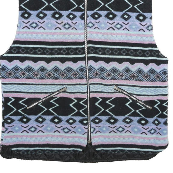 Mens Blue Black & Purple Patterned Quilted Zip Jacket M Polyester Casual Warm
