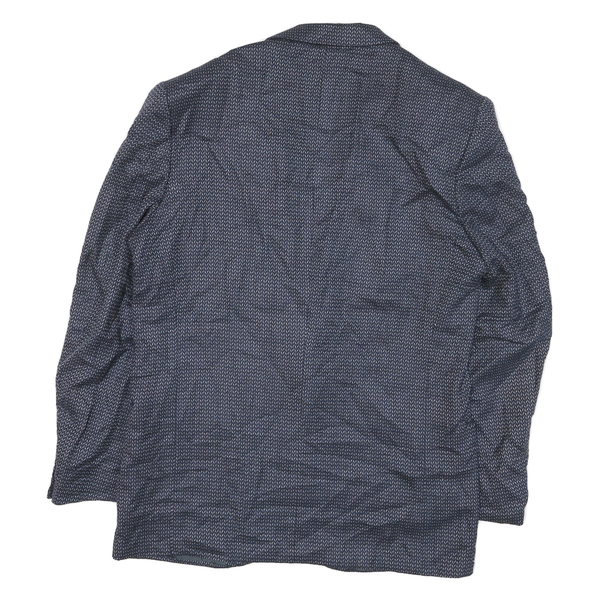 This men's jacket presents a deep blue colour with a subtle plain pattern that adds a sleek and versatile look ideal for layering. It features a classic button closure with a traditional notch lapel collar, which offers a timeless design suited for both casual and dressier occasions. The fabric has a smooth, slightly textured appearance typical of polyester blends, providing durability and ease of care.