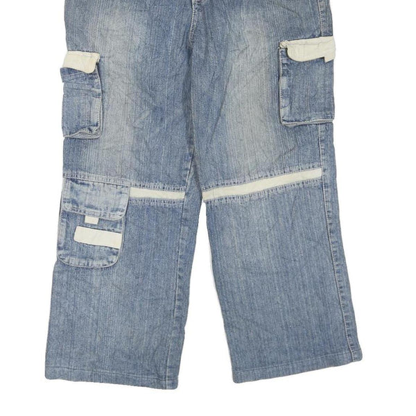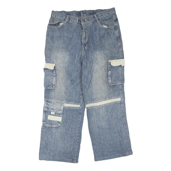 Mens Blue Cargo Regular Fit Cotton Blend Zip Denim Jeans W34 L25 Workwear