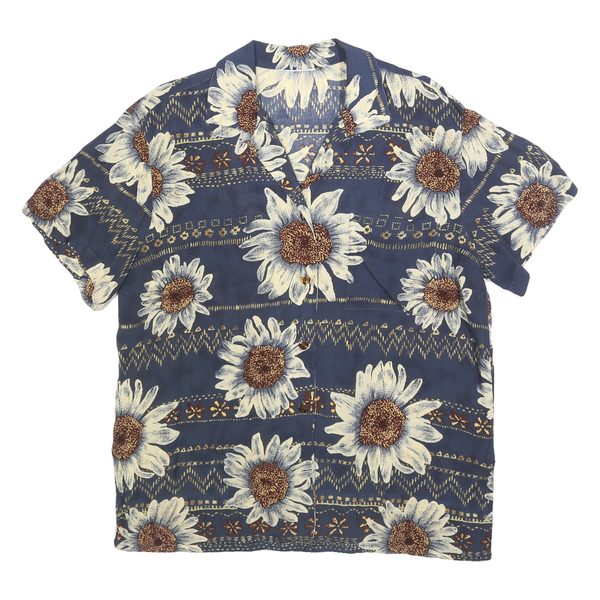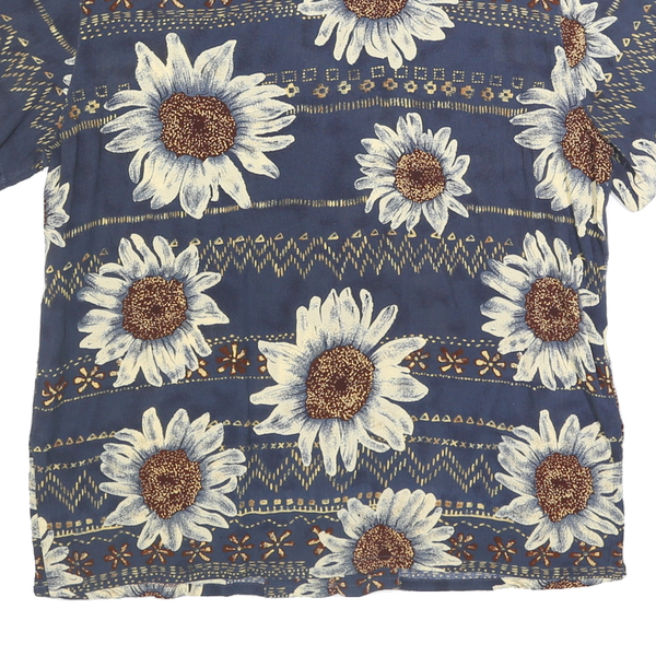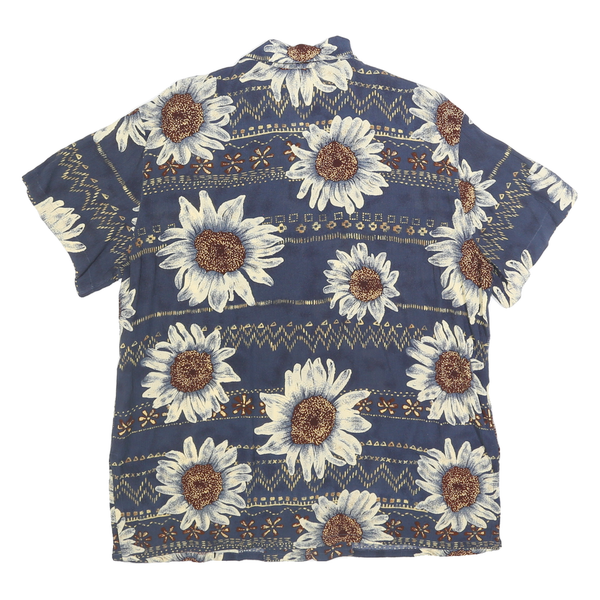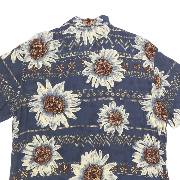Mens Blue & Cream Floral Pattern Shirt L Short Sleeve Button Up Summer Casual