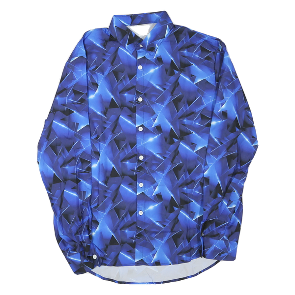 Mens blue geometric pattern shirt xl polyester blend stylish casual wear