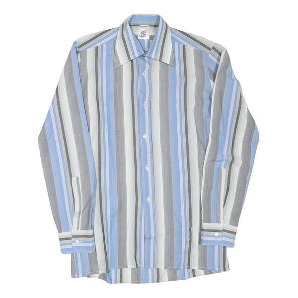 Mens Blue & Grey Striped Cotton Blend Shirt M Long Sleeve Button Collar