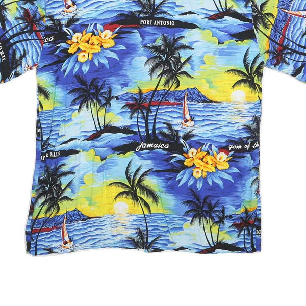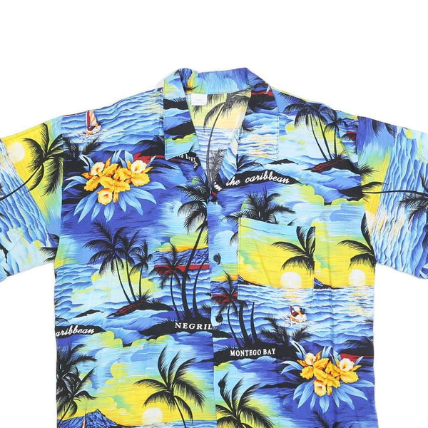 Mens Blue Hawaiian Shirt L Cotton Blend Vacation Beach Tropical Print