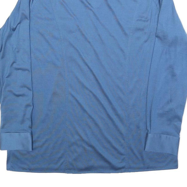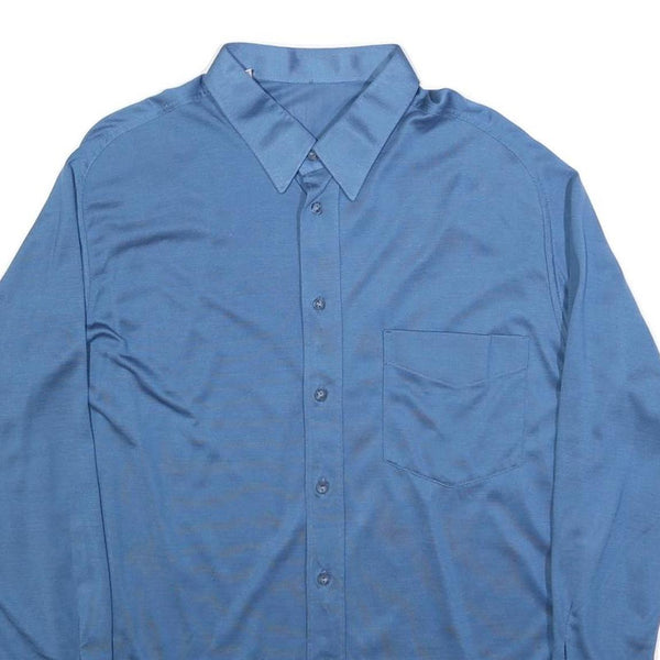 Mens blue polyester long sleeve shirt l classic fit button collar pocket