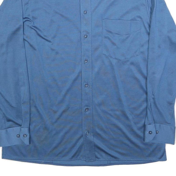 Home Mens Blue Polyester Long Sleeve Shirt L Classic Fit Button Collar Pocket