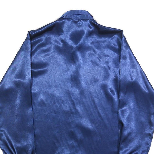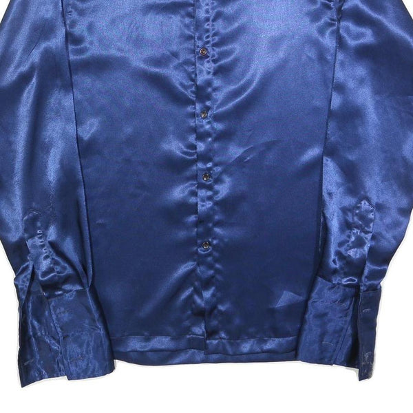 Mens Blue Satin Plain Shirt M Long Sleeve Button Closure Point Collar Classic