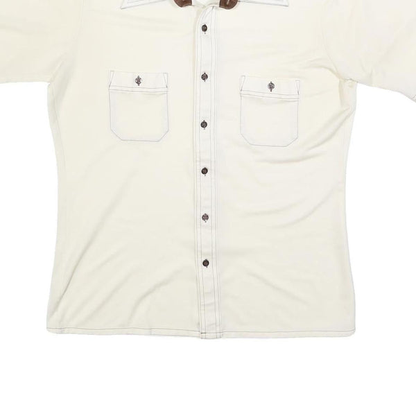 Mens Cream & Brown Casual Button Shirt L Two Pocket Short Sleeve Lightweight