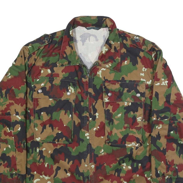Mens Green Brown Camouflage Zip Cotton Blend Jacket M Military Style Casual