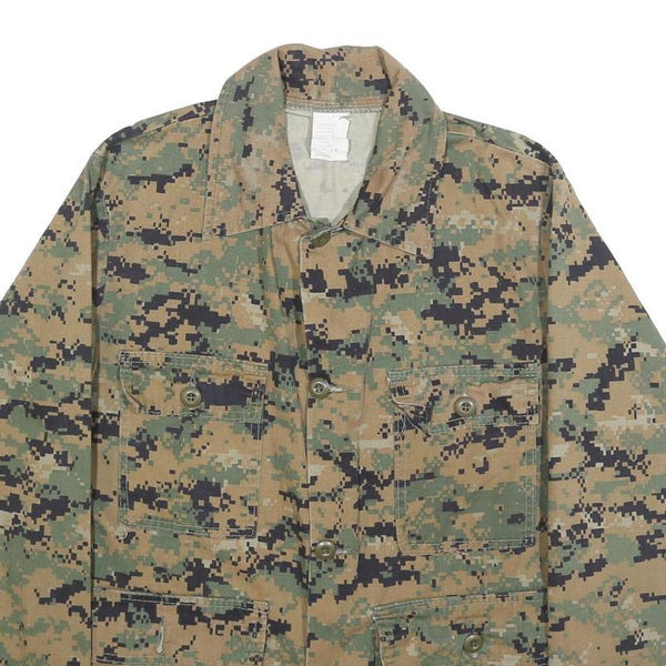Mens Green Brown Digital Camo Military Jacket S Cotton Blend Button Plain Casual
