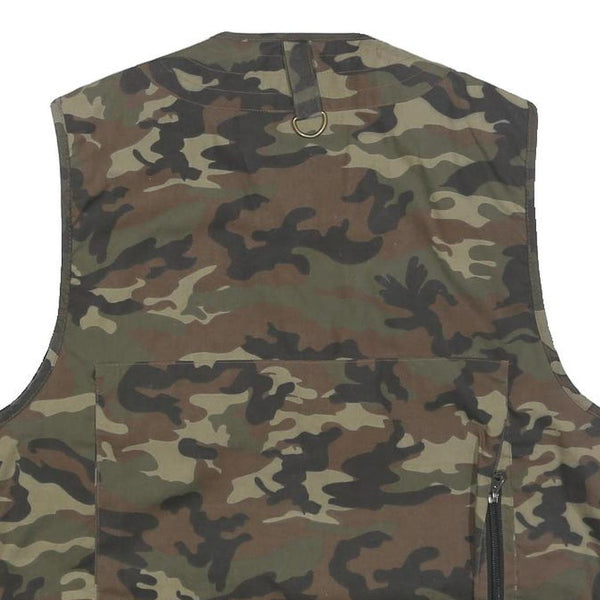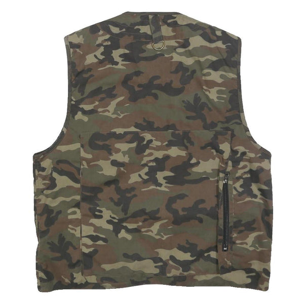 Mens Green Camouflage Cotton Zip Jacket Vest M Utility Pocket Outdoor Casual