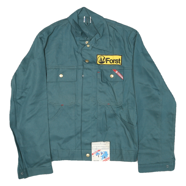 Mens Green Cotton Workwear Button Jacket S Plain Utility Durable
