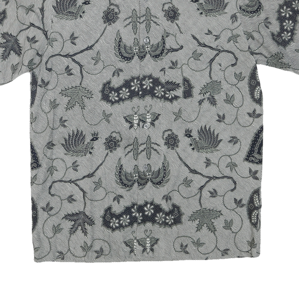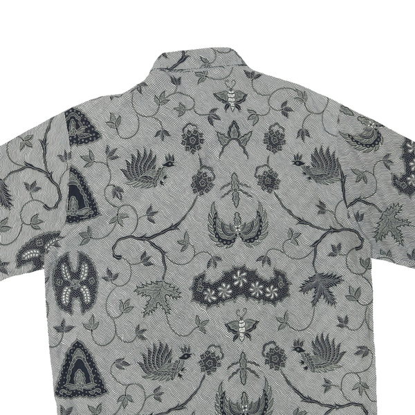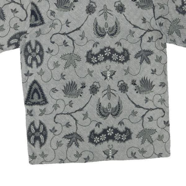 Mens Grey Black Cotton Blend Pattern Shirt L Short Sleeve Casual Beach Style
