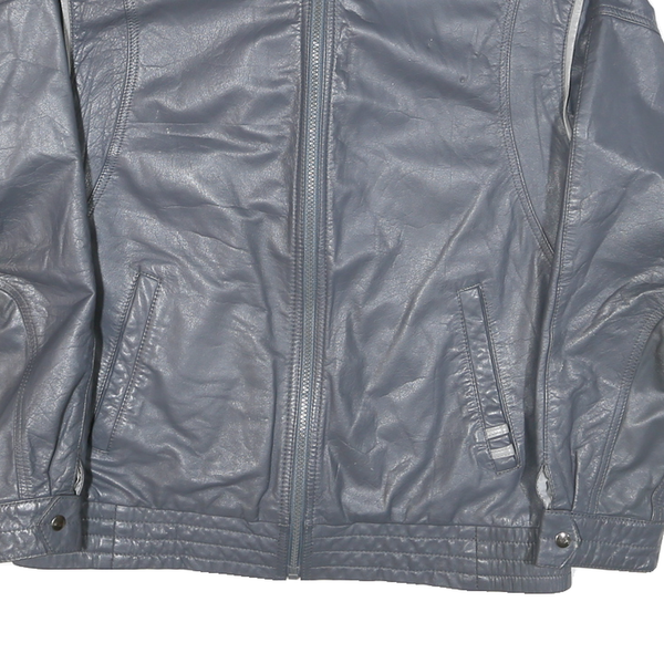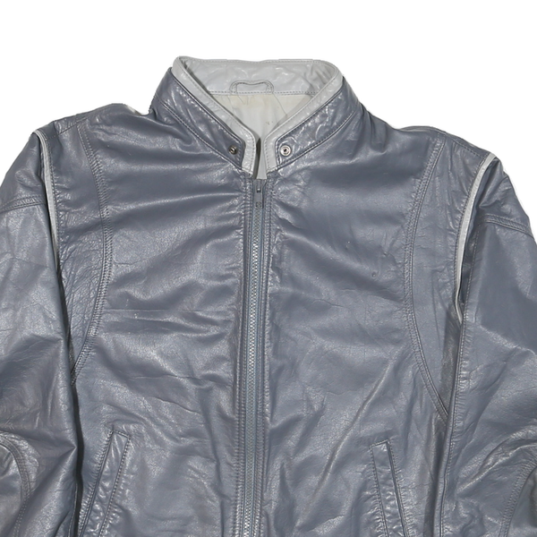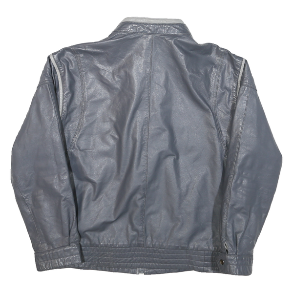 Mens Grey Leather Motorcycle Jacket S Plain Zip Closure Stand-Up Collar Classic