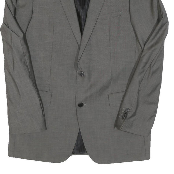 Mens Grey Wool Blend Classic Tailored Jacket L Button Closure Plain Formal