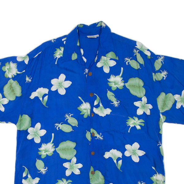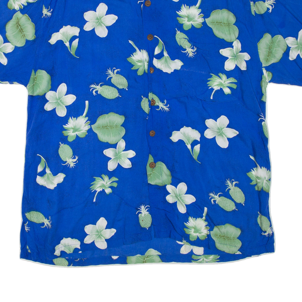 Mens Hawaiian Shirt Blue Floral M