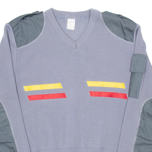 Mens Jumper Grey V-Neck Chunky Knit XS