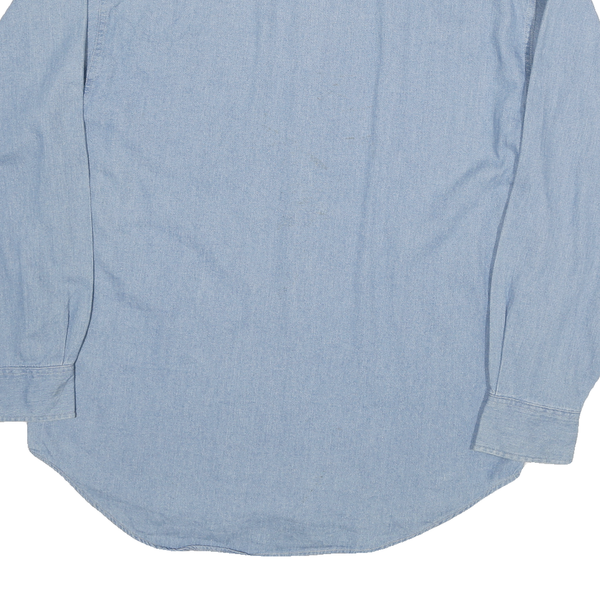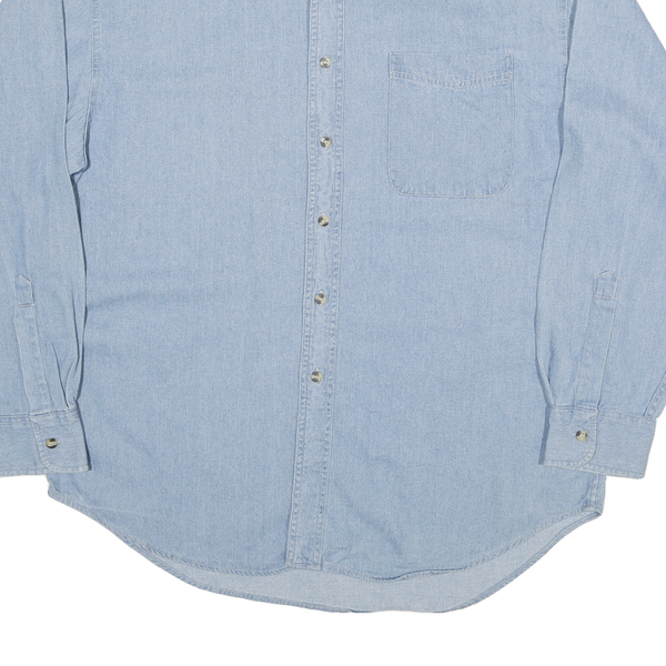 Mens Light Blue Plain Cotton Blend Shirt L Button Down Collar Casual Wear