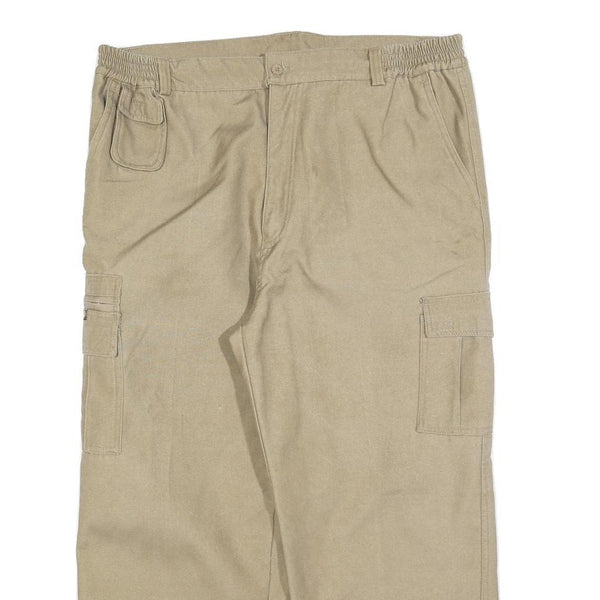 Mens Lined Cotton Blend Beige Relaxed Cargo Trousers W38 L26 Casual Workwear Zip