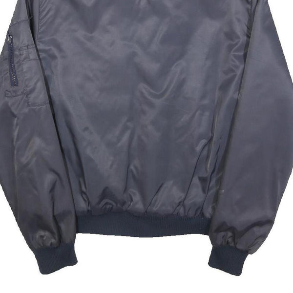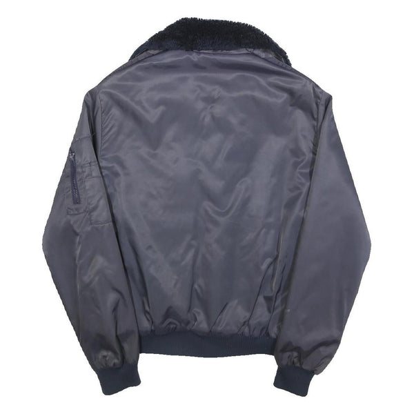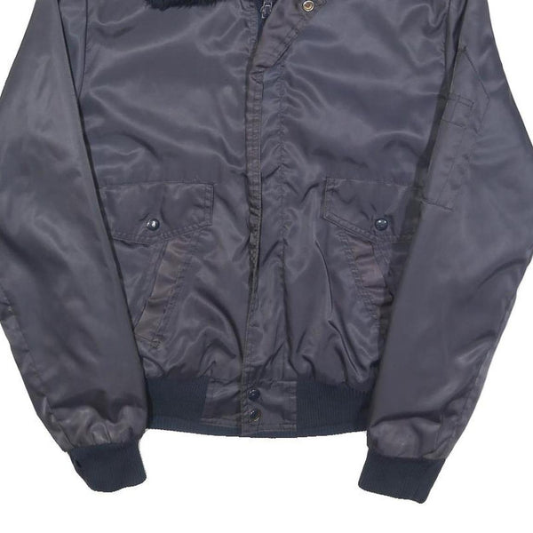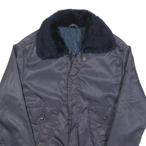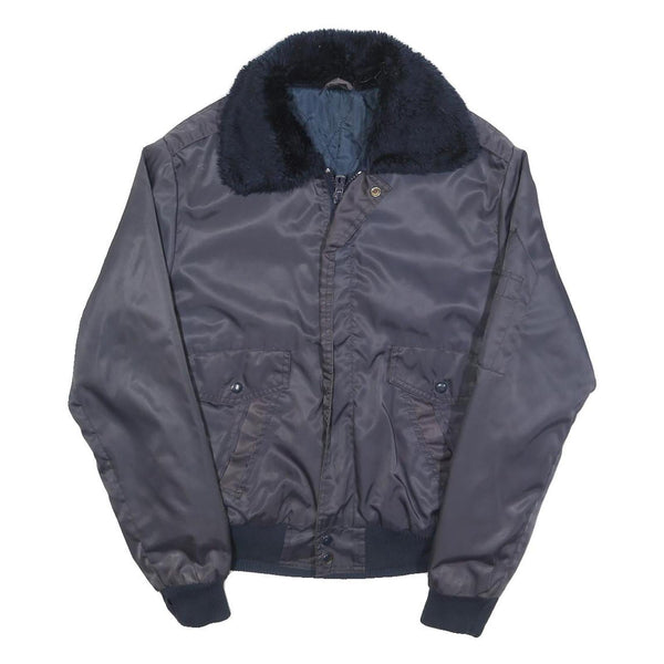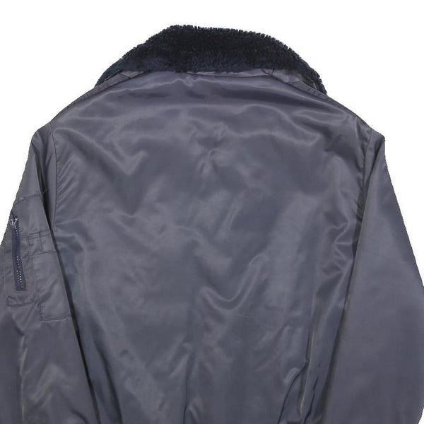 Mens Navy Blue Plain Flight Jacket S Polyester Blend Zip Faux Fur Collar