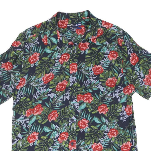 Mens Navy Blue Red Green Floral Pattern Short Sleeve Shirt M Cotton Summer