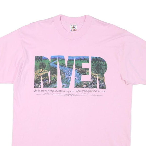 Mens Pink Cotton Blend Graphic T-Shirt XL Short Sleeve Crew Neck River Print