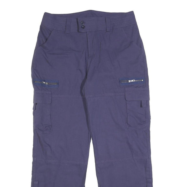 Mens Regular Blue Cotton Blend Cargo Trousers W34 L30 Utility Pocket Zip Closure