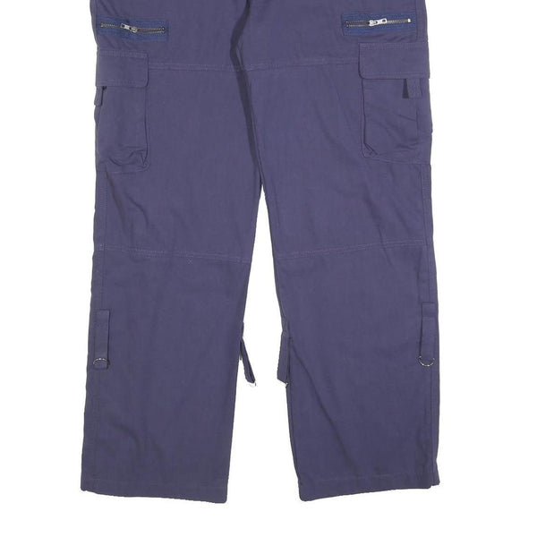 Mens regular blue cotton blend cargo trousers w34 l30 utility pocket zip closure