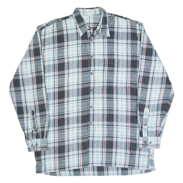 Mens Shirt Grey Check Long Sleeve L