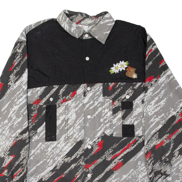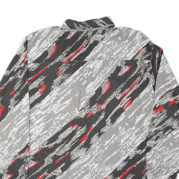 Mens Shirt Grey Crazy Pattern Long Sleeve L