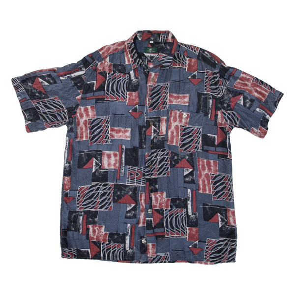 Mens Shirt Grey Faux Silk Crazy Pattern L