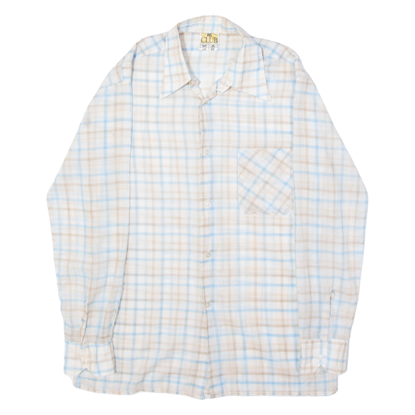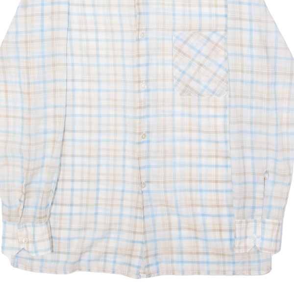 Mens Shirt White Viscose Plaid Long Sleeve M