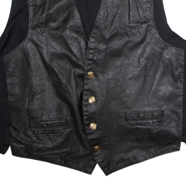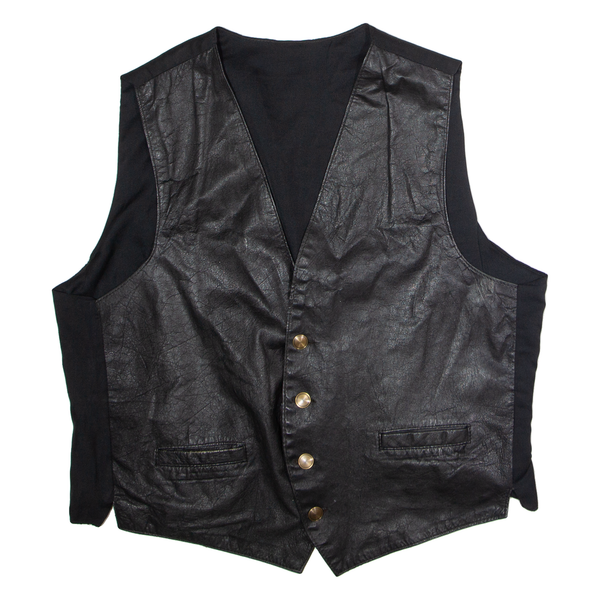 Mens Waistcoat Black Leather XL