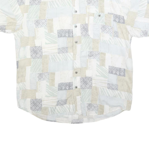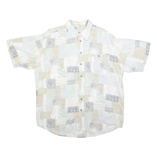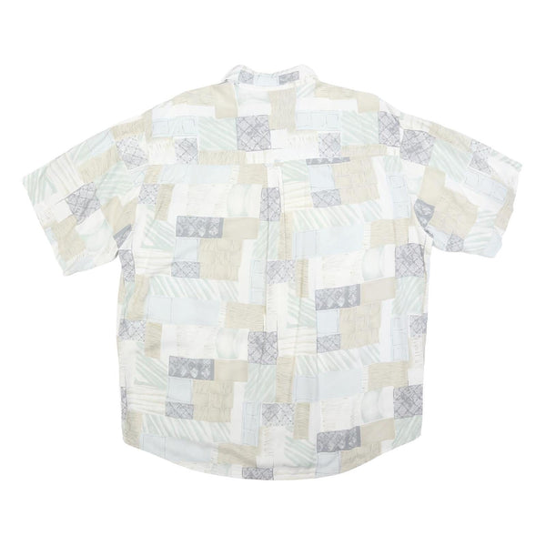 Mens White Beige Grey Patchwork Pattern Cotton Blend Shirt XL Casual Summer