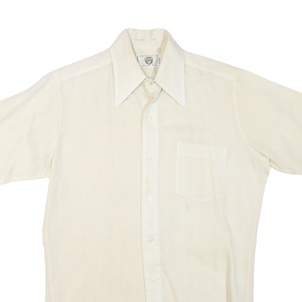 Mens White Polyester Blend Short Sleeve Shirt S Classic Collar Chest Pocket