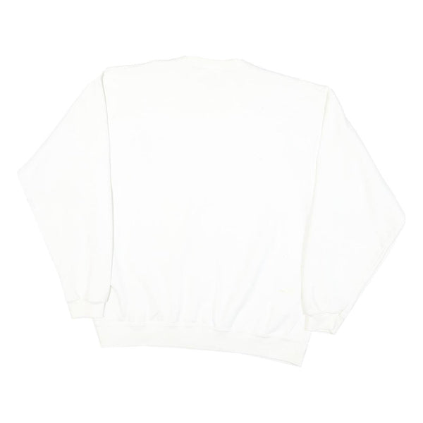 Crafted from a soft cotton blend, the sweatshirt offers comfort and warmth with a relaxed adult men's large fit. Ribbed cuffs and waistband provide shape retention. The back side is plain white, allowing the front graphic to stand out. It's perfect for casual wear, relaxed outings, or evoking an easy coastal vibe.