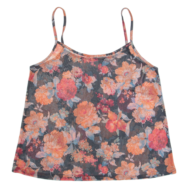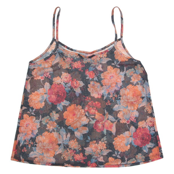 Mesh Womens Camisole Top Blue V-Neck Sleeveless Floral M