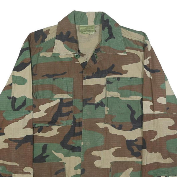 MFH Mens Green & Brown Camouflage Cotton Blend Button Jacket S Ripstop Outdoor