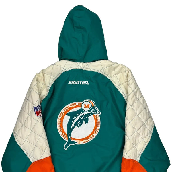 Vintage Miami Dolphins Starter Jacket, Quilted Sleeves, Hooded, Nfl Logo