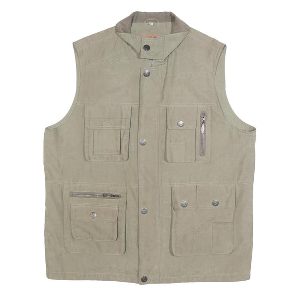 MIAN Mens Beige Utility Jacket XL Polyester Blend Zip Pockets Outdoor Vest
