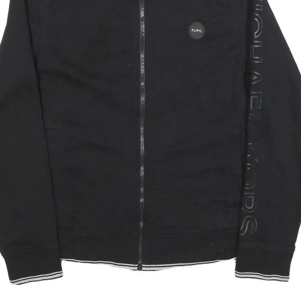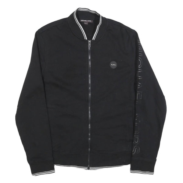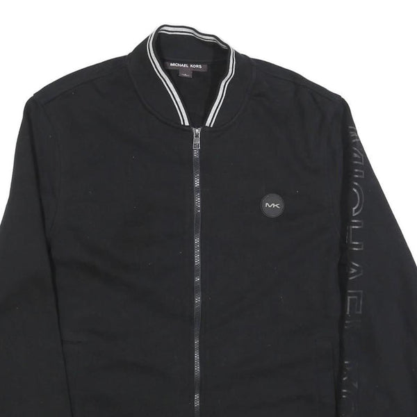 MICHAEL KORS Womens Black Bomber Jacket L Cotton Blend Plain Zip Stylish
